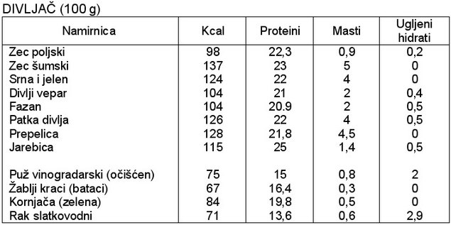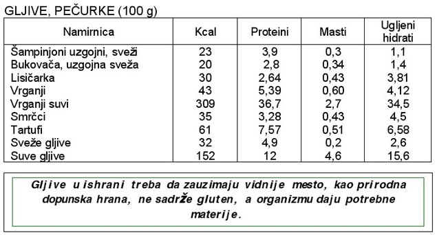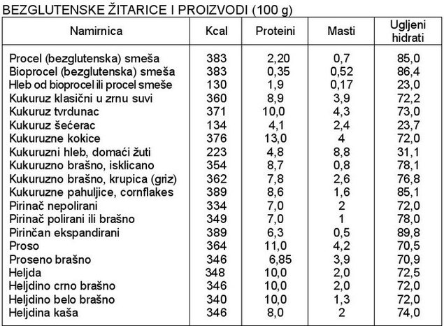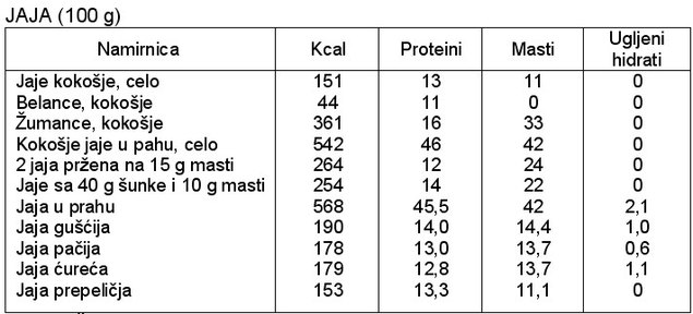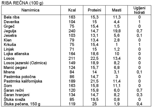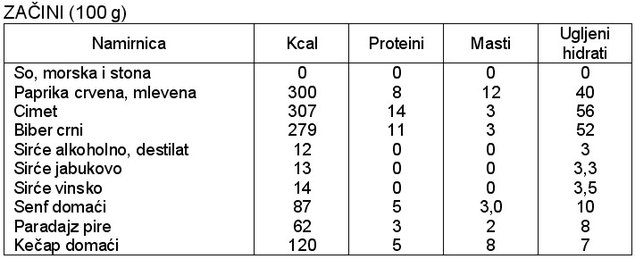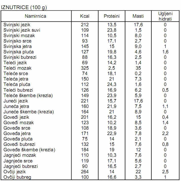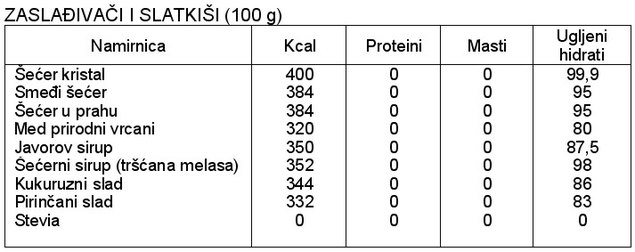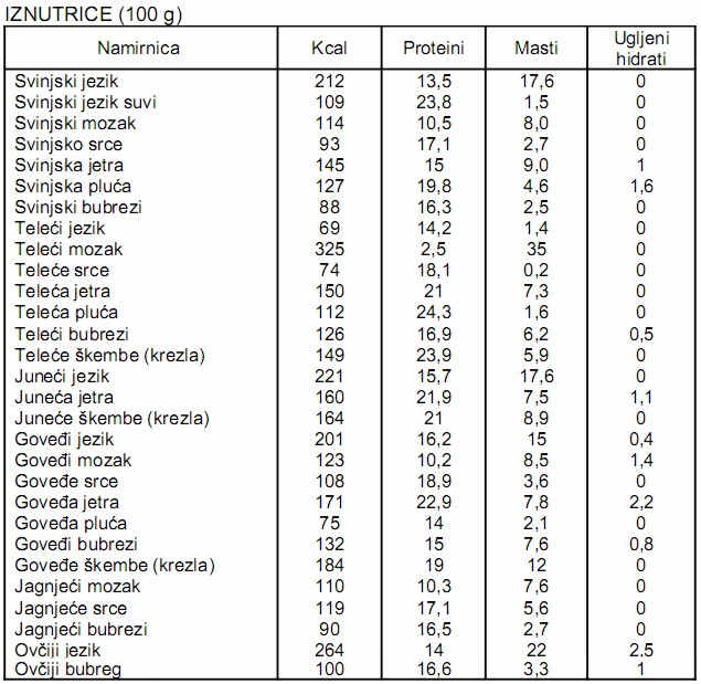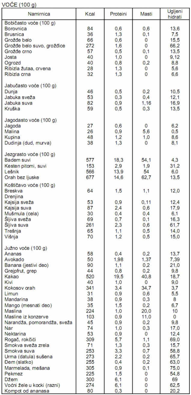 TABELA KALORIJSKIH I HRANLJIVIH VREDNOST OSNOVNIH NAMIRNICA